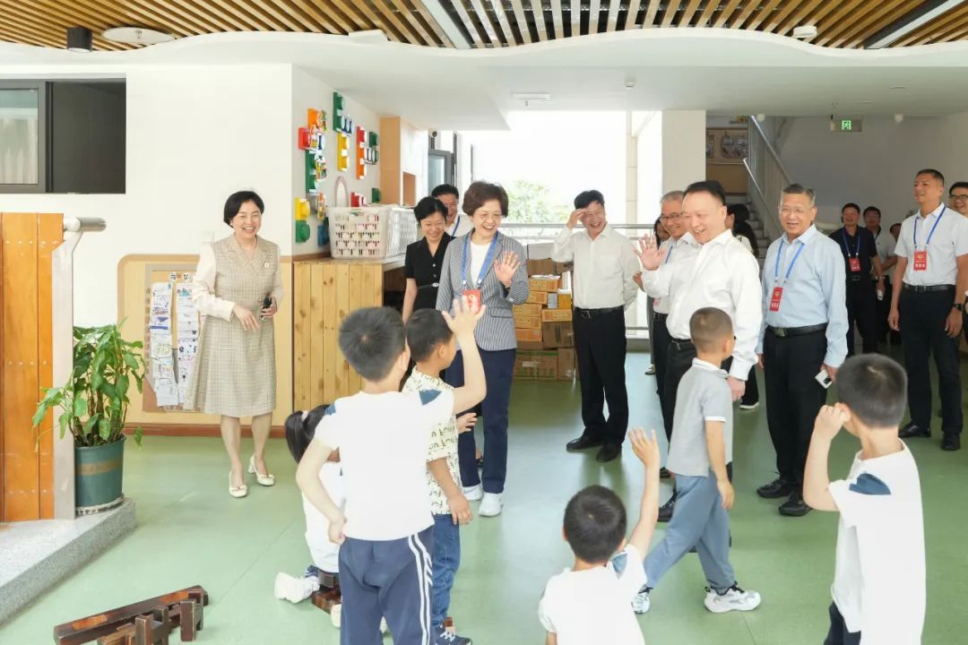 市政协党组书记、主席程丽华在同茂幼儿园视察。柯俊彬 摄
