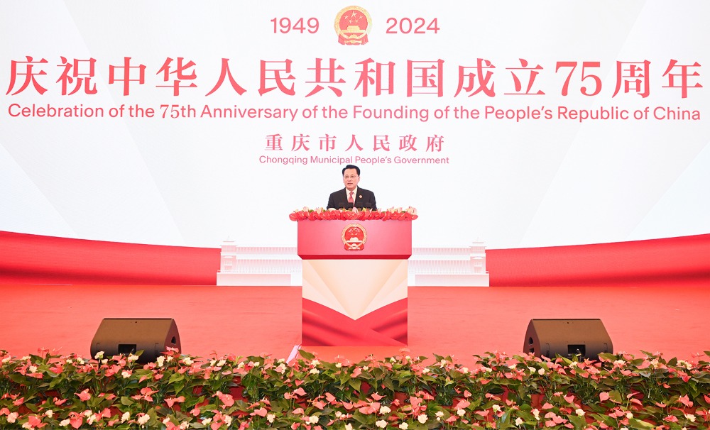 袁家军说,新中国成立75年来,重庆从中共中央西南局、西南军政委员会驻地,到作为国家“三线”建设重点区域,再到1997年成为中国中西部地区唯一直辖市,为国家发展、民族复兴贡献了巴渝儿女的智慧和力量。中共二十大以来,重庆牢记习近平主席殷殷嘱托,全面开启新时代新征程社会主义现代化新重庆建设,统筹推进高质量发展、高品质生活、高效能治理,改革发展呈现向上向好积极态势,社会大局和谐稳定,全市上下唯实争先、主动担当的精气神进一步提振,社会各界对重庆发展的关注度、参与度和信心进一步增强。新征程上,重庆坚持以习近平新时代中国特色社会主义思想为指导,认真学习贯彻中共二十大和二十届二中、三中全会精神,坚决扛起党中央赋予的新使命、担起重庆人民寄予的新期盼,锚定目标、坚定信心,凝心聚力、攻坚克难,努力把习近平主席视察重庆激发的澎湃激情,转化为推动现代化新重庆建设行稳致远的实干担当,大力培育新质生产力、推动高质量发展,进一步全面深化改革、扩大高水平对外开放,积极探索超大城市现代化治理新路子,持续增进改善民生福祉、让人民群众更有获得感幸福感安全感和认同感,更好实现以重庆一域服务全国大局。