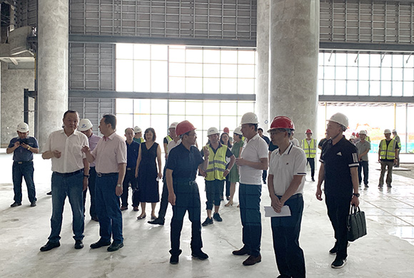 吴主席一行在杨庆军院长的引导下查看了即将完工的新院大厅、门诊部、住院部以及污水排放系统,详细了解新院大楼的规划设计、工程进度、未来的科室设置等情况。