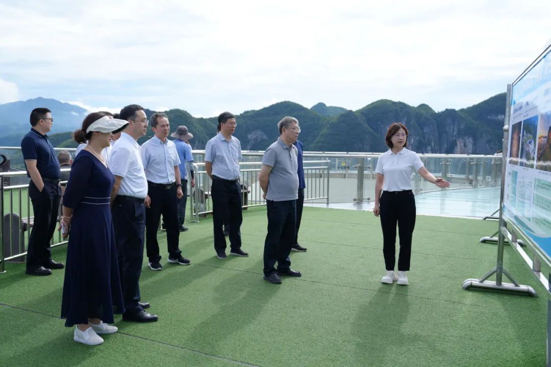 调研组在龙缸景区听取景区发展规划、资源开发利用、生态环境保护等情况介绍。程卓 摄