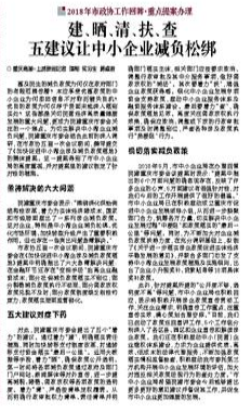 重庆商报:《建、晒、清、扶、查 五建议让中小企业减负松绑》
