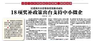 重庆日报:《18项奖补政策出台支持中小微企》