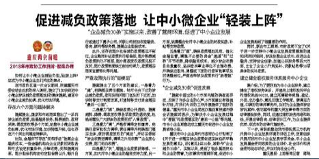 重庆晚报:《减负政策落地 中小企业解忧》