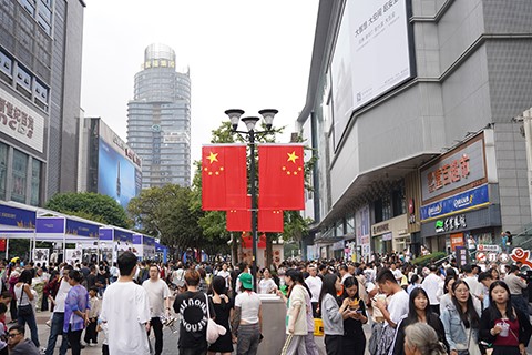 国庆期间人潮涌动的观音桥商圈 柯俊彬 摄