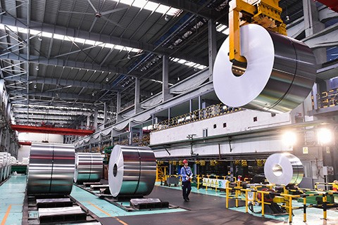 西南铝热轧线刚生产出的铝合金热轧卷 九龙坡区政协 供图