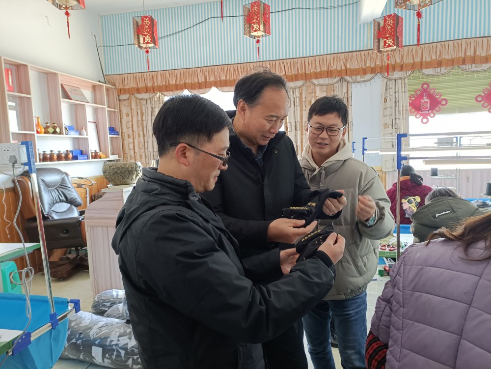 ▲驻乡工作队调研宝台村玩具加工厂生产情况。市政协供图