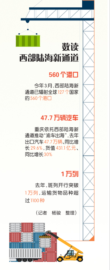 去年4月,陆海新通道可辐射全球120个国家的503个港口;到今年3月,通道已可辐射全球127个国家的560个港口,拓展速度可见一斑。