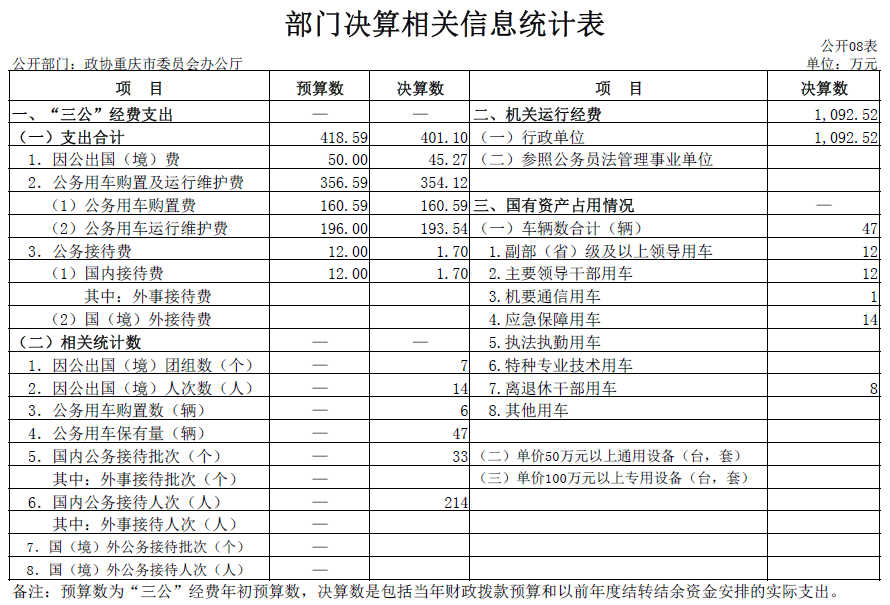 (一)机关运行经费情况说明。2018年度本部门机关运行经费支出1,092.52万元,机关运行经费主要用于办公费、印刷费、水电费、邮电费、物业管理费、公务车运行维护费、劳务费等。机关运行经费较上年决算数增加240.99万元,增长22.06%,主要原因是水电费增长幅度较大及物价上涨等因素。