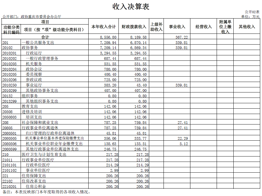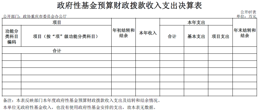 (四)机构改革情况。按照重庆市机构改革方案要求,本部门未涉及机构改革。