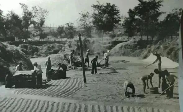 七十年代生产队时期社员在打场