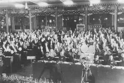 全国政协第一届全体会议上,代表们举手表决议案