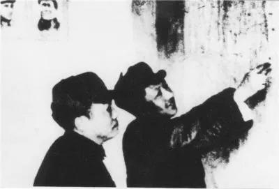 彭德怀(左)与习仲勋在研究作战方案