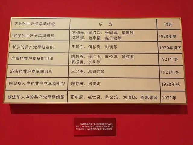 在上海及北京党组织的联络推动下,各地党的早期组织纷纷建立起来。1920年秋至1921年春,董必武、陈潭秋、包惠僧等在武汉,毛泽东、何叔衡等在长沙,王尽美、邓恩铭等在济南,谭平山、谭植棠等在广州,成立了共产党早期组织。在日本、法国,成立了由留学生和华侨中先进分子组成的共产党早期组织。