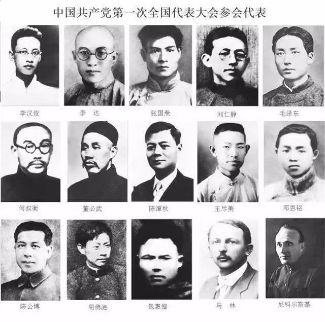 参加会议的代表有:上海的李达、李汉俊,北京的张国焘、刘仁静,长沙的毛泽东、何叔衡,武汉的董必武、陈潭秋,济南的王尽美、邓恩铭,广州的陈公博,旅日的周佛海;包惠僧受陈独秀派遣,出席了会议。他们代表着全国50多名党员。共产国际代表马林和尼克尔斯基出席了会议。陈独秀和李大钊因事务繁忙未出席会议。