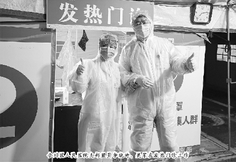 合川区人民医院支部盟员李晓琦、吴军在发热门诊工作