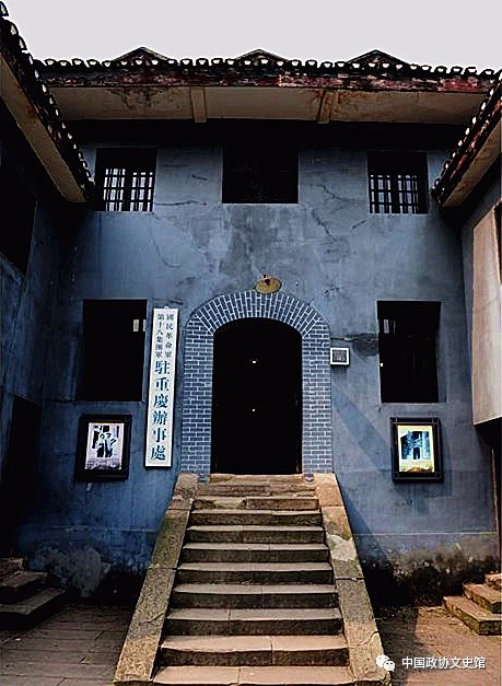 登上石阶,到了八路军办事处旧址,大姐仔细参观了一楼的几个房间。就是在这座普通的楼房,周恩来同志和邓大姐曾经在这里生活、学习、工作和战斗,他们与董必武、吴玉章、王若飞、博古、陆定一等同志一起,为巩固第二次国共合作,争取抗日战争的胜利,推动新中国的诞生,作出了卓越的贡献。