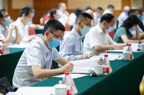 专题小组讨论现场,王炯认真听取常委们的建言,手中的笔不停地在笔记本上记录,不时与常委们互动交流。