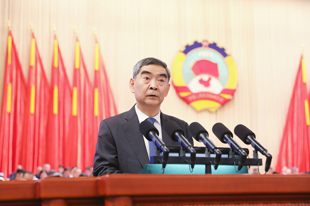 1月18日上午,政协第六届重庆市委员会第三次会议在市人民大礼堂开幕。丁时勇代表政协第六届重庆市委员会常务委员会作提案工作情况的报告。第1眼TV-华龙网记者 李文科 石涛 摄