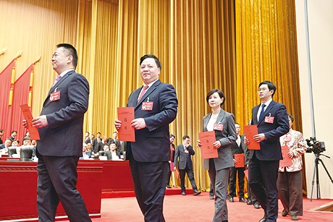 闭幕会上,委员们鼓掌通过决议。记者 廖文豪 摄