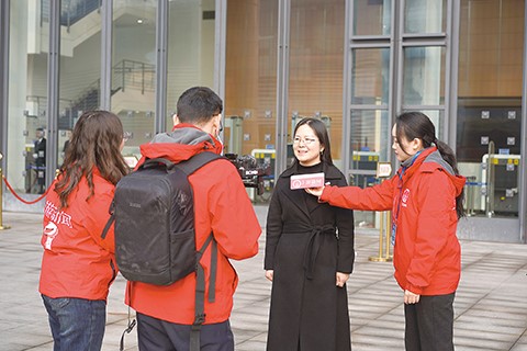 接受媒体采访 记者 李忆南 秦杰 摄