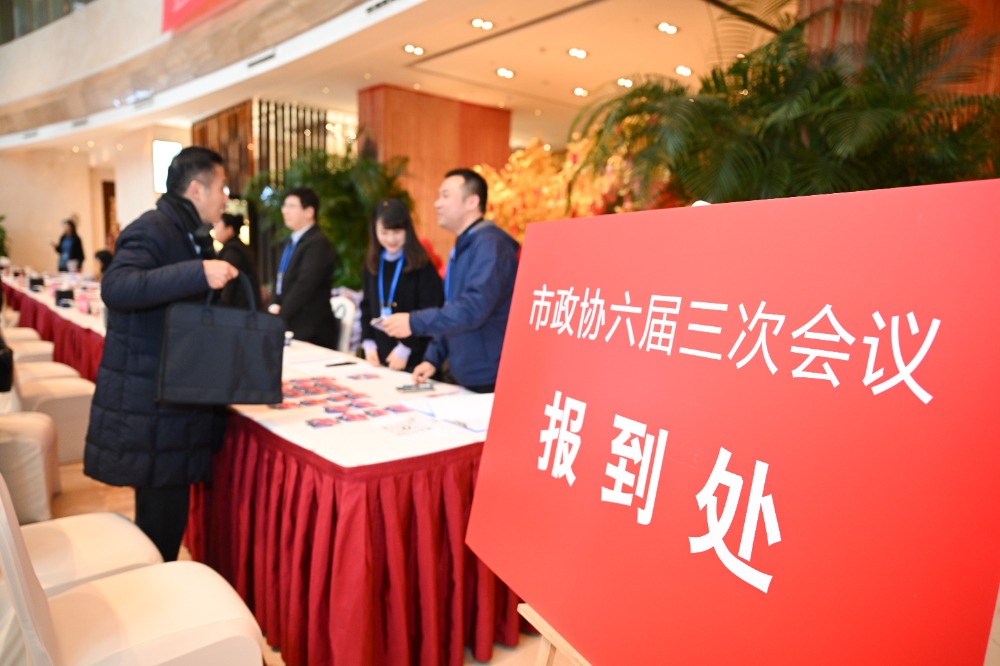 ▲2025年1月17日,政协委员住地,市政协六届三次会议报到处。记者 谢智强 摄