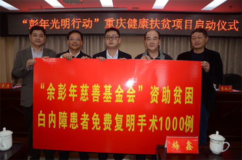2016年,重庆市政协办公厅及市政协港澳台侨和外事委经香港委员牵线搭桥,争取到余彭年慈善基金会捐赠500万元,在重庆开展“彭年光明行动”,为万州区、丰都县1000名贫困白内障患者实施免费治疗。