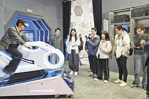 两岸融合发展交流营一行参观重庆体育博物馆,体验“山城之旅”VR项目。记者 程卓 摄